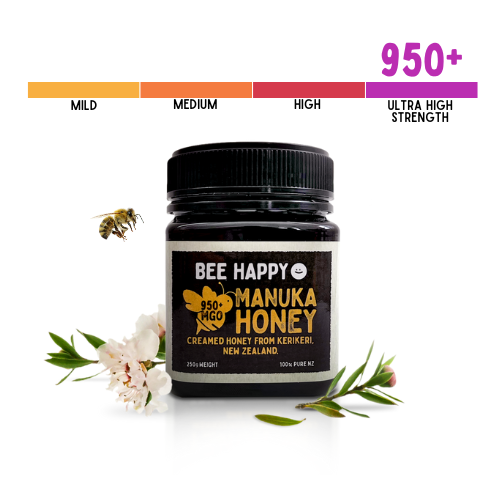 Experience maximum potency and therapeutic benefits of Bee Happy Manuka Honey MGO 950+. Trust in the natural healing power of one of the highest quality Manuka honeys available.